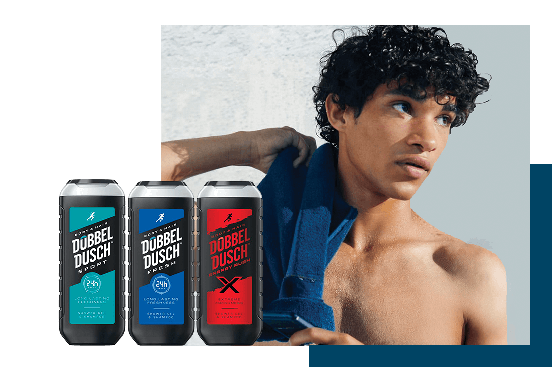 Da oltre 40 anni Dubbel Dusch è uno dei prodotti più amati nei bagni degli uomini. “Due volte più facile!” è lo slogan che accompagna il marchio fin dalla sua nascita, insieme al suo packaging semplice e colorato. Con Dubbel Dusch sai sempre cosa stai scegliendo e puoi contare su una freschezza imbattibile. Pensato per chi ha uno stile di vita attivo e dinamico, garantisce prestazioni efficaci e una freschezza a lunga durata grazie a una formula biodegradabile al 99%.
